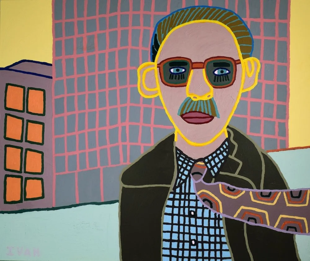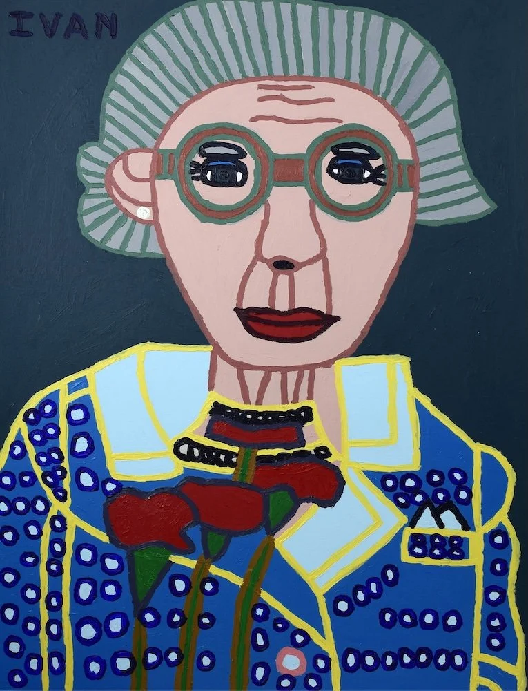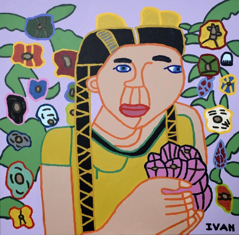 Depuis 2009, Ivan a construit un corpus d’œuvres marquant, centré sur le portrait. S’inspirant de visages du quotidien découverts dans les journaux, les magazines de mode et les médias, il les transpose en compositions audacieuses et hautement stylisées. Son processus — esquisse, études de couleurs, puis superposition de couches d’acrylique — donne naissance à des portraits dont le regard confronte directement le spectateur.
