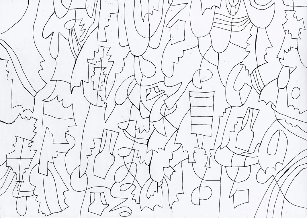 Lorsque l’on observe attentivement les œuvres de Satoru, on découvre des mots qui se relient les uns aux autres, formant un langage visuel singulier. C’est au collège qu’il développe sa propre manière de tracer lignes et mots.