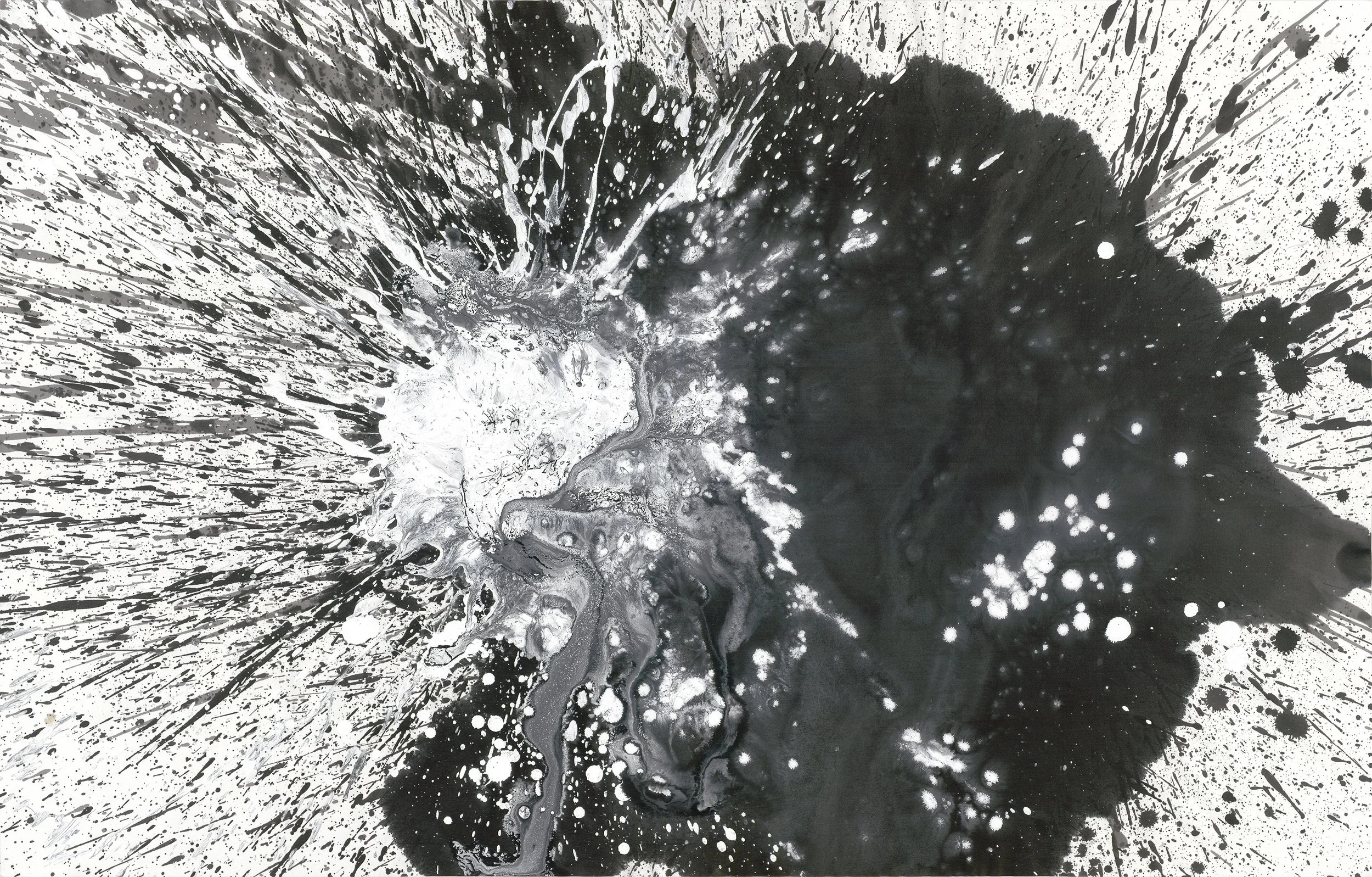 Toujours empreint d’un charme innocent, il passe ses journées à suivre son propre rythme : se promener, s’allonger au soleil, ou répéter doucement ses mots préférés comme une mélodie. Un jour, une feuille de papier fut posée au sol et on lui remit un récipient de peinture. Sans hésiter, il renversa la couleur sur la feuille. Peut-être était-ce d’abord un geste accidentel. Mais le lendemain, et les jours suivants, il recommença. Peu à peu, ce simple geste de renverser la peinture prit tout son sens. Tantôt audacieuses, tantôt délicates, ces expressions libres et sans forme ont fini par recouvrir la feuille de couleurs, incarnant pleinement sa présence.